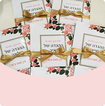 למזמינים הגדות ניתן לקבל עם כיתוב אחיד על הכל או תוספת של שם אישי של כל אורח/ת