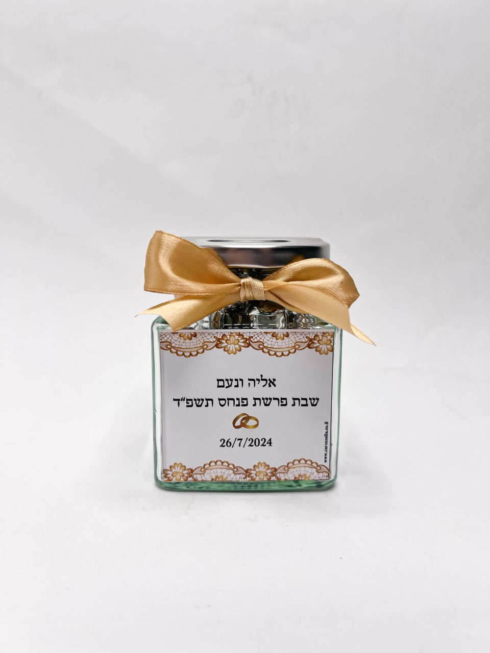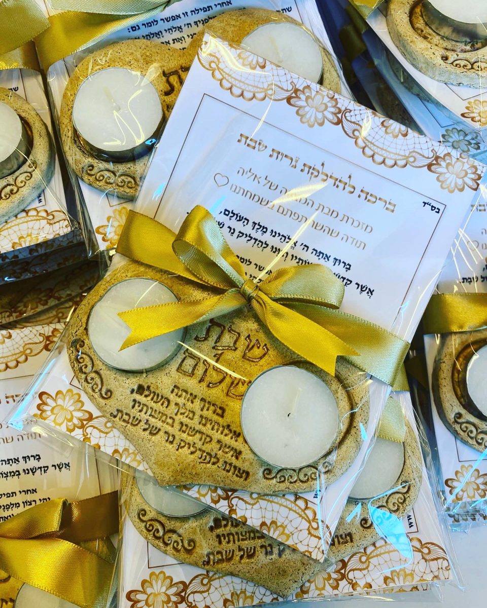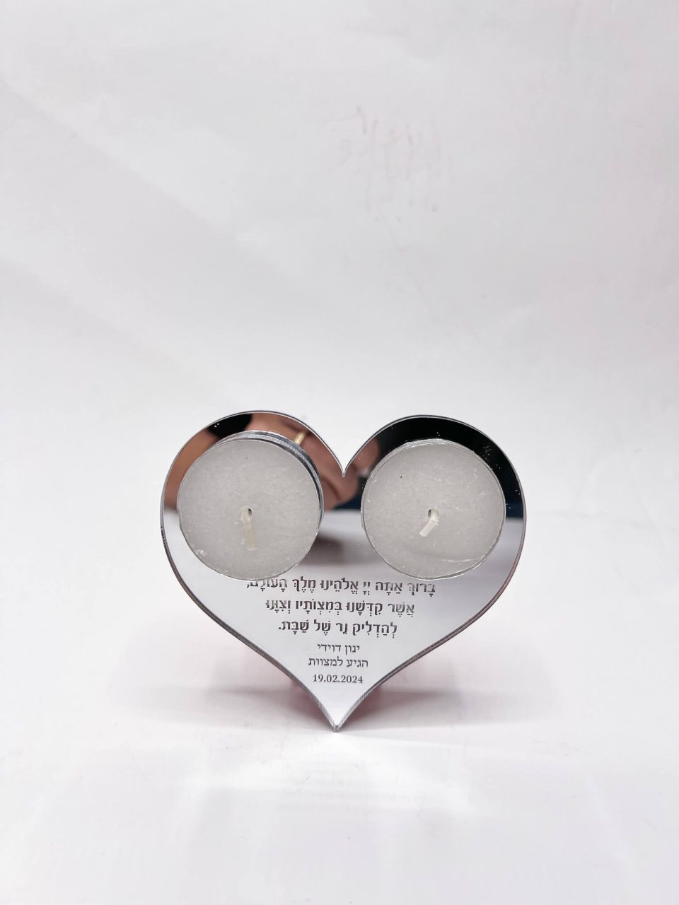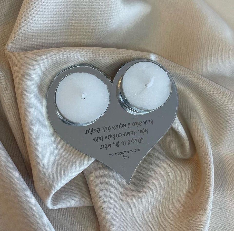 פמוטים מזכוכית עם הקדשה אישית וברכת הדלקת נרות