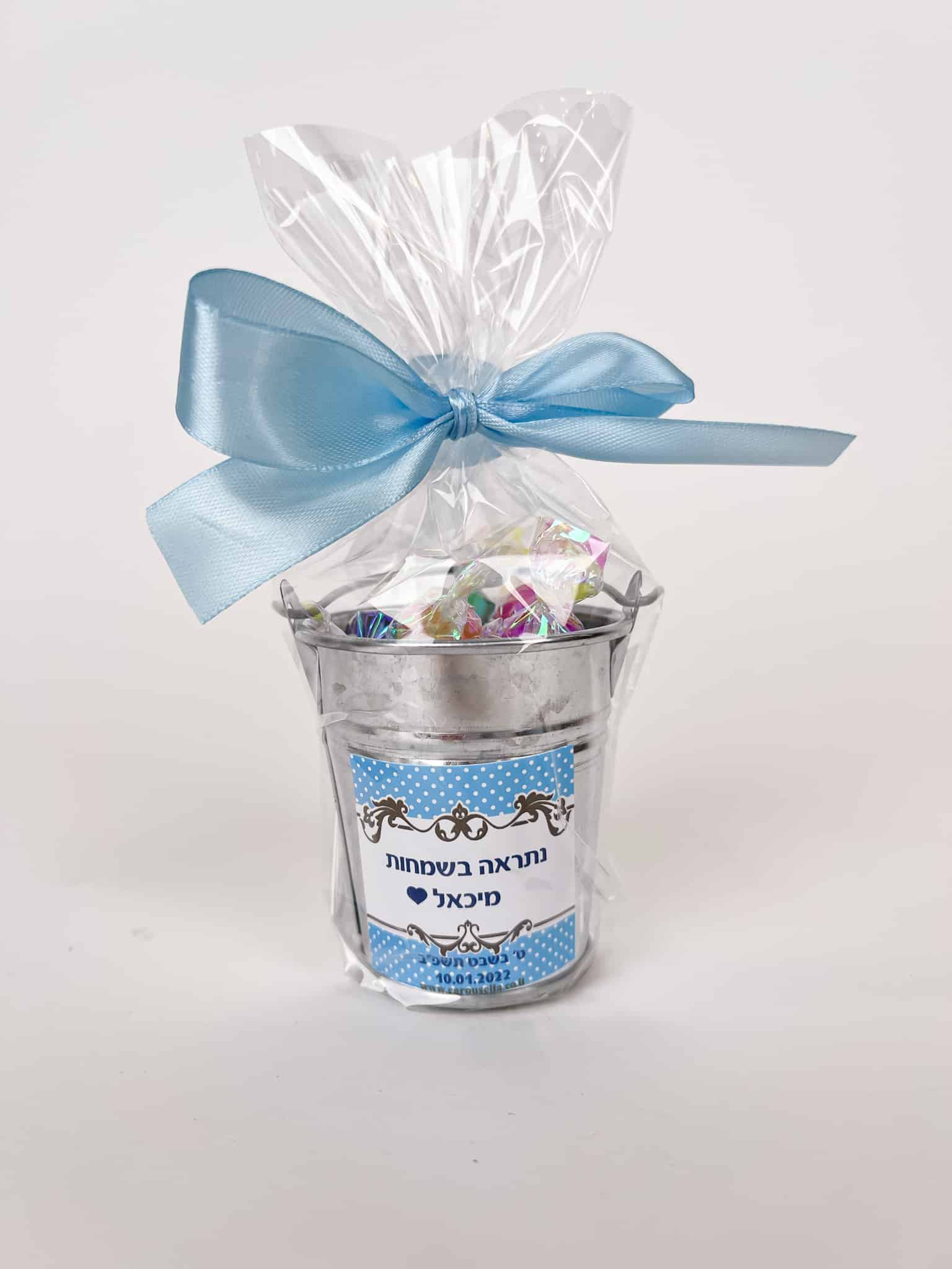 דלי עם סוכריות וכיתוב אישי