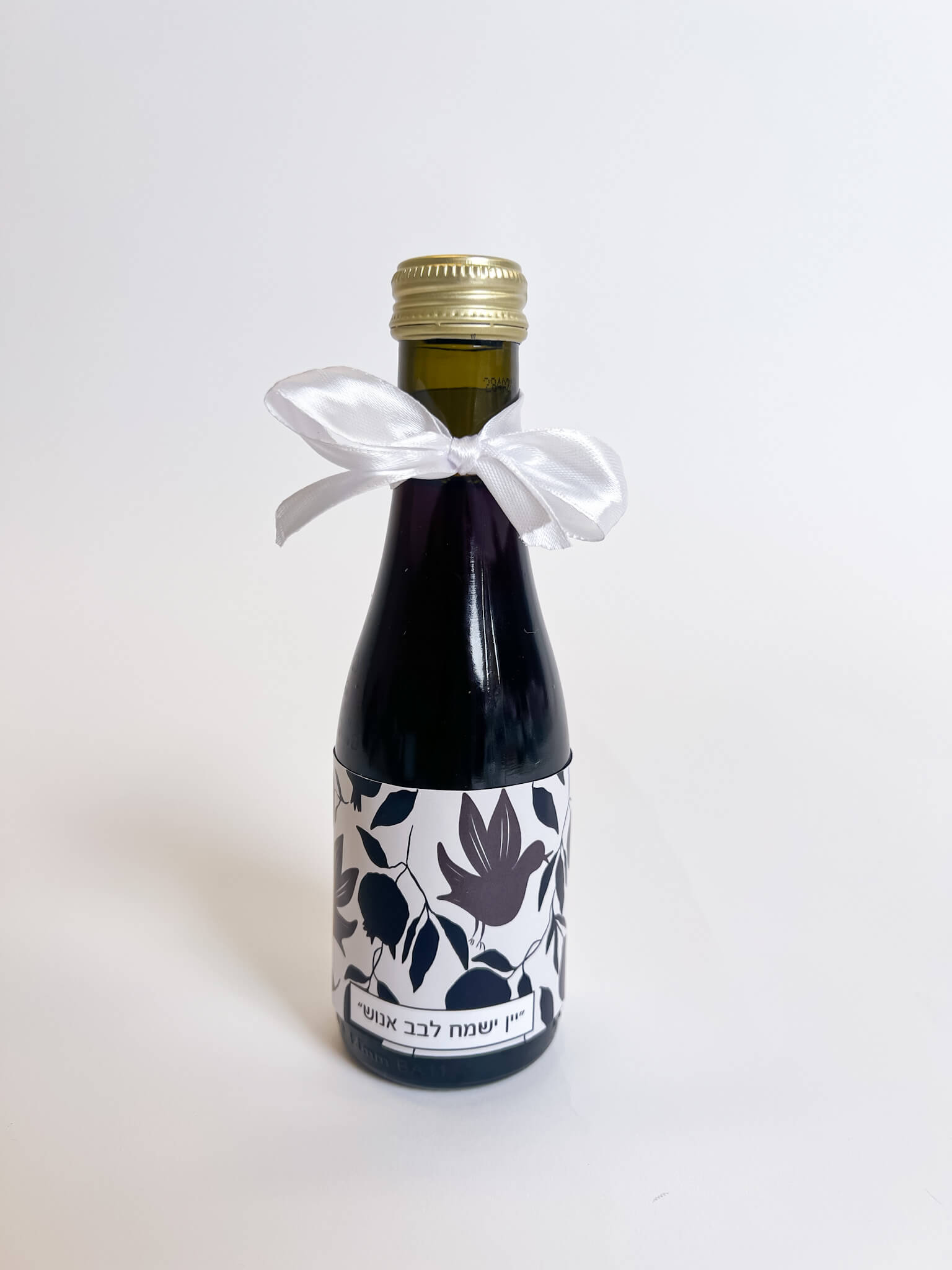 יין אדום אישי המכיל 187 מ"ל של יקב סגל, מגיע עם מדבקה ומסביב כיתוב לבחירה. ניתן להוסיף את לוגו החברה. מגיע עם סרט סאטן מסביב לפיית הבקבוק.