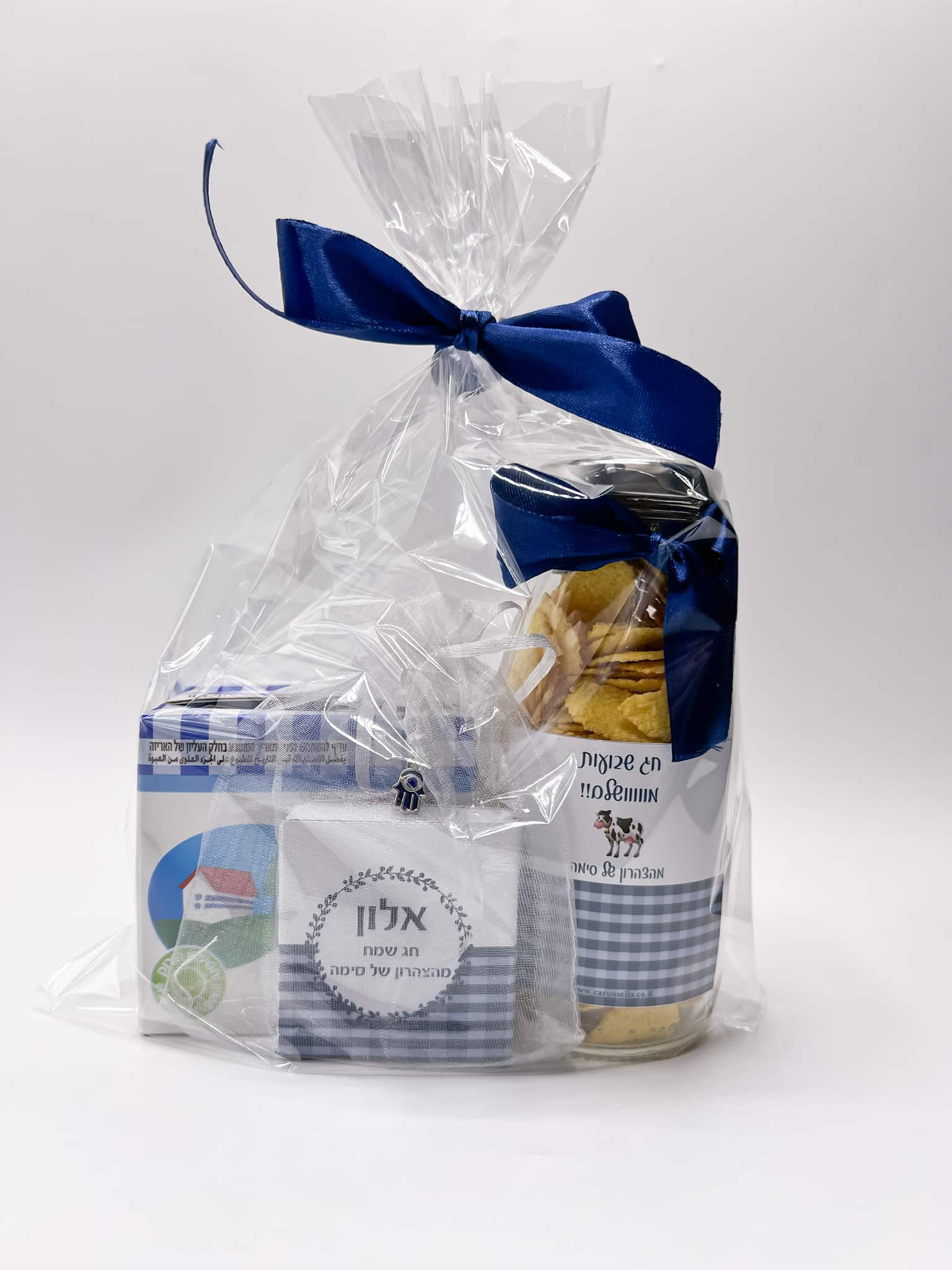 המארז מכיל צנצנת זכוכית המכילה 250 מ"ל במילוי קורנפלקס. הצנצנת מגיעה עם מדבקה ועליה כיתוב לבחירה, חלב עמיד וספר תהילים עם שם הילד המארז נארז עם צלופן וסרט סאטן. גובה צנצנת 13 ס"מ