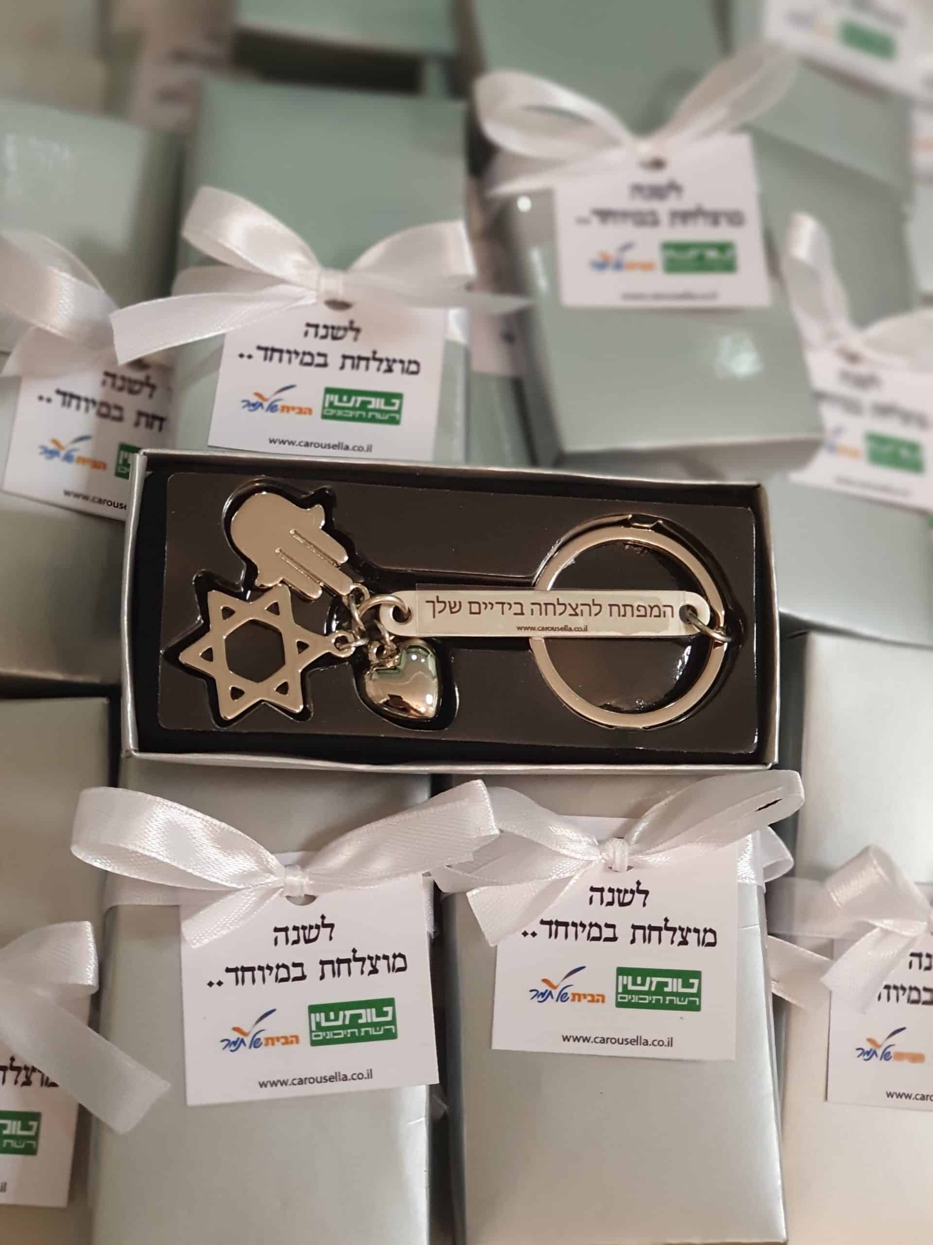מחזיק מפתחות ממתכת, המפתח להצלחה מגיע עם מדבקה שקופה והקדשה עליו. קיימים בו שלושה תליונים חמסה,מגן דוד ולב. מגיע ארוז עם קופסא כסופה ועליה סרט סאטן ופתקית ממותגת.