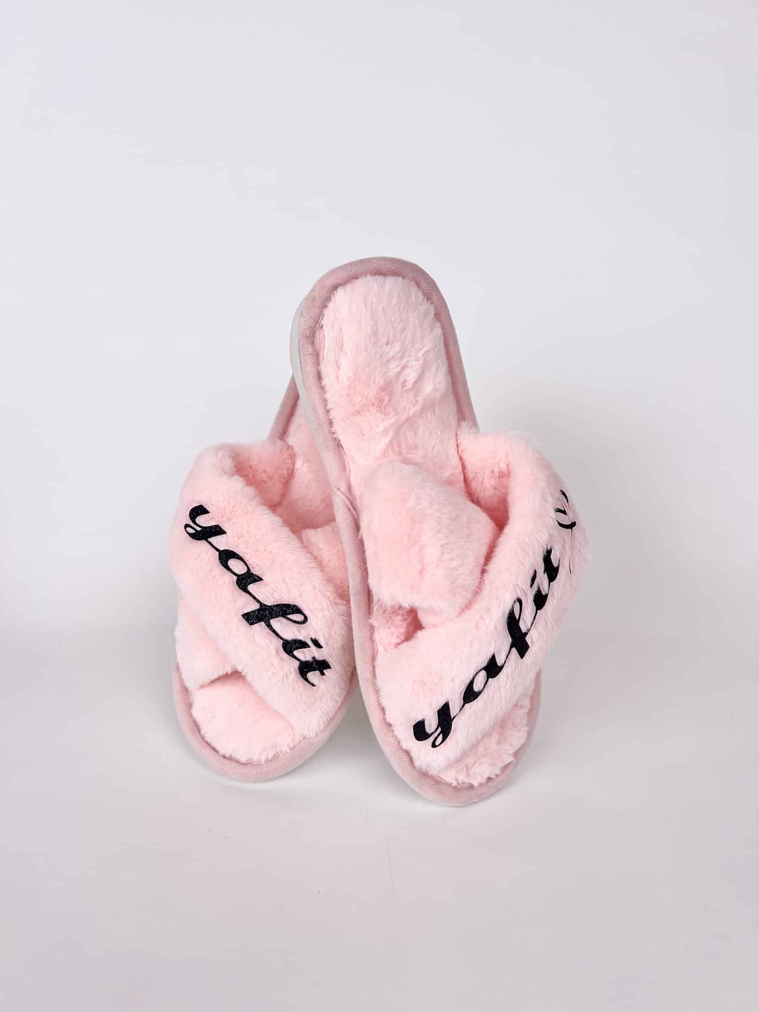 כפכפי אצבע מפרווה נעימה המגיעים בצבעים ורוד/שחור, על הכפכפים מודפס כיתוב או שם לבחירה בצבע שחור נצנצים/זהב נצנצים/כסף נצנצים.
