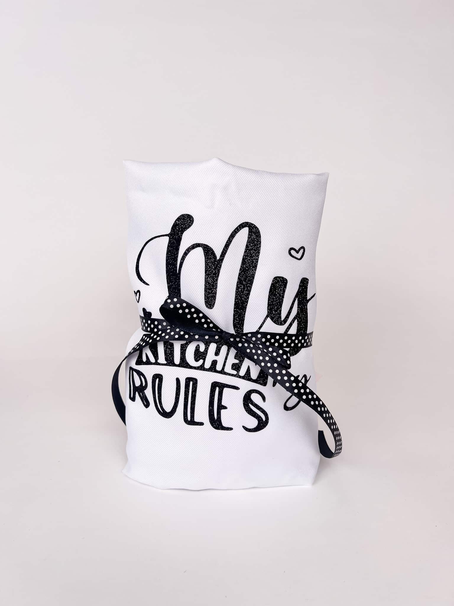 סינר מטבח למבוגר מגיע עם הדפסה עליו עם כיתוב לבחירה/שם אישי. צבע ההדפסה יכול להיות שחור נצנצים/זהב נצנצים/כסף נצנצים.