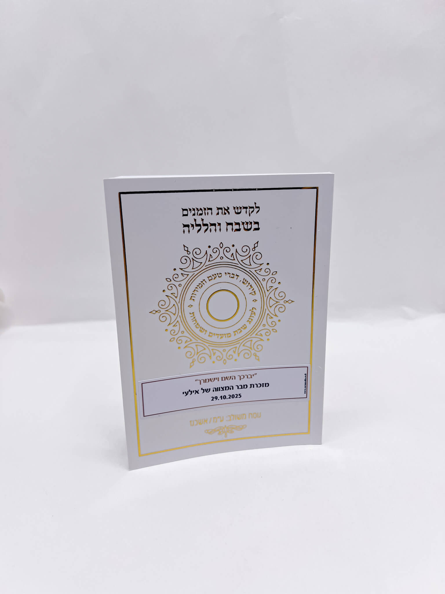 ספרון חגים וזמירות מתאים בגודל לכל כיס, גודל 15*10 ס"מ. מגיע בכריכה לבן וזהב, מכיל 188 עמודים. הספרון מגיע עם מדבקה ועליה כיתוב לבחירה (ניתן להוסיף הטבעה בתוספת תשלום). הספרון נארז עם צלופן.
